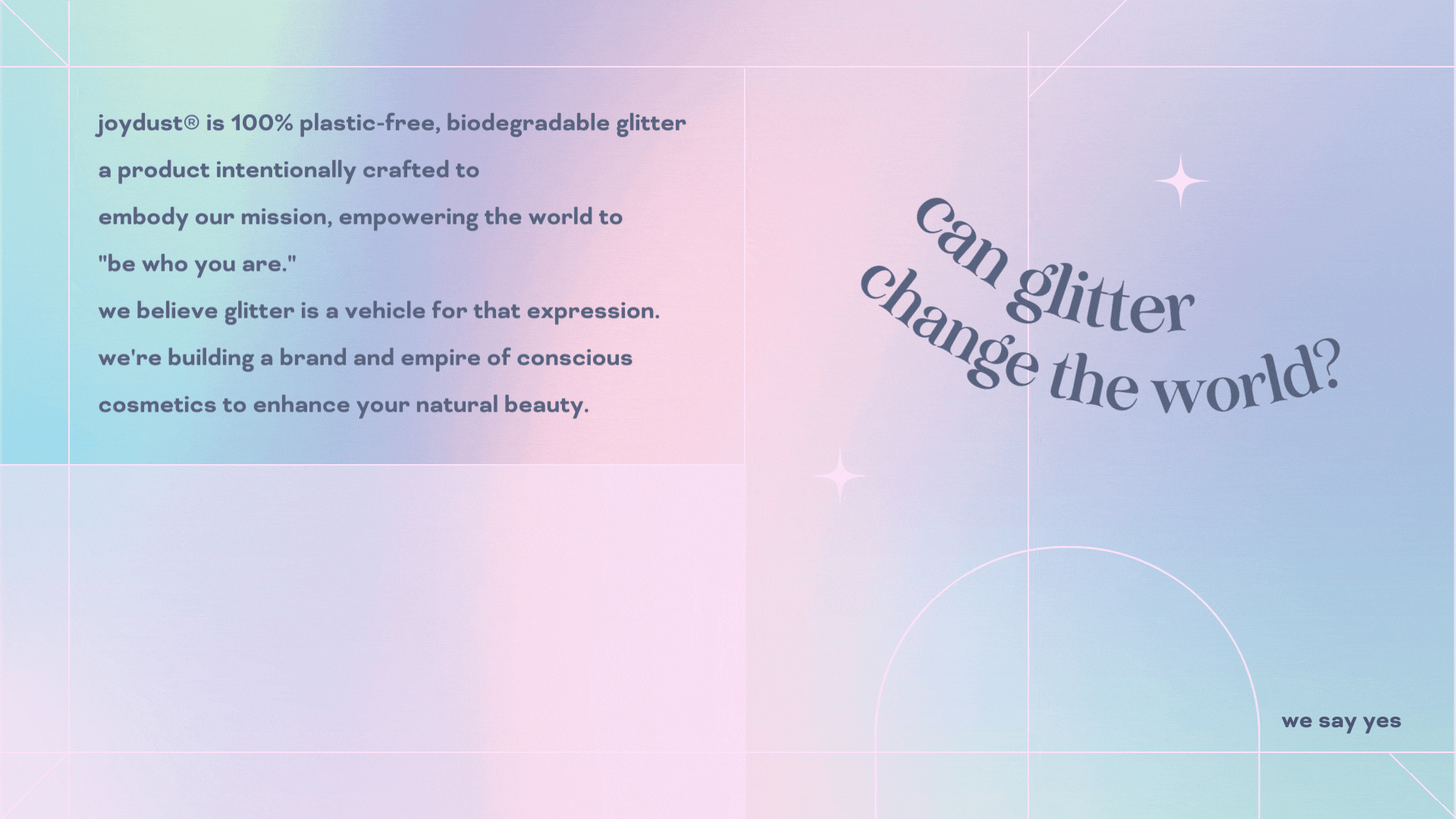 joydust® is joyflow’s sister brand, 100% plastic-free biodegradable glitter. I source and pour the product, sell online and at local markets; I’ve also done popup glitter bars at private events like birthday parties & weddings. Website